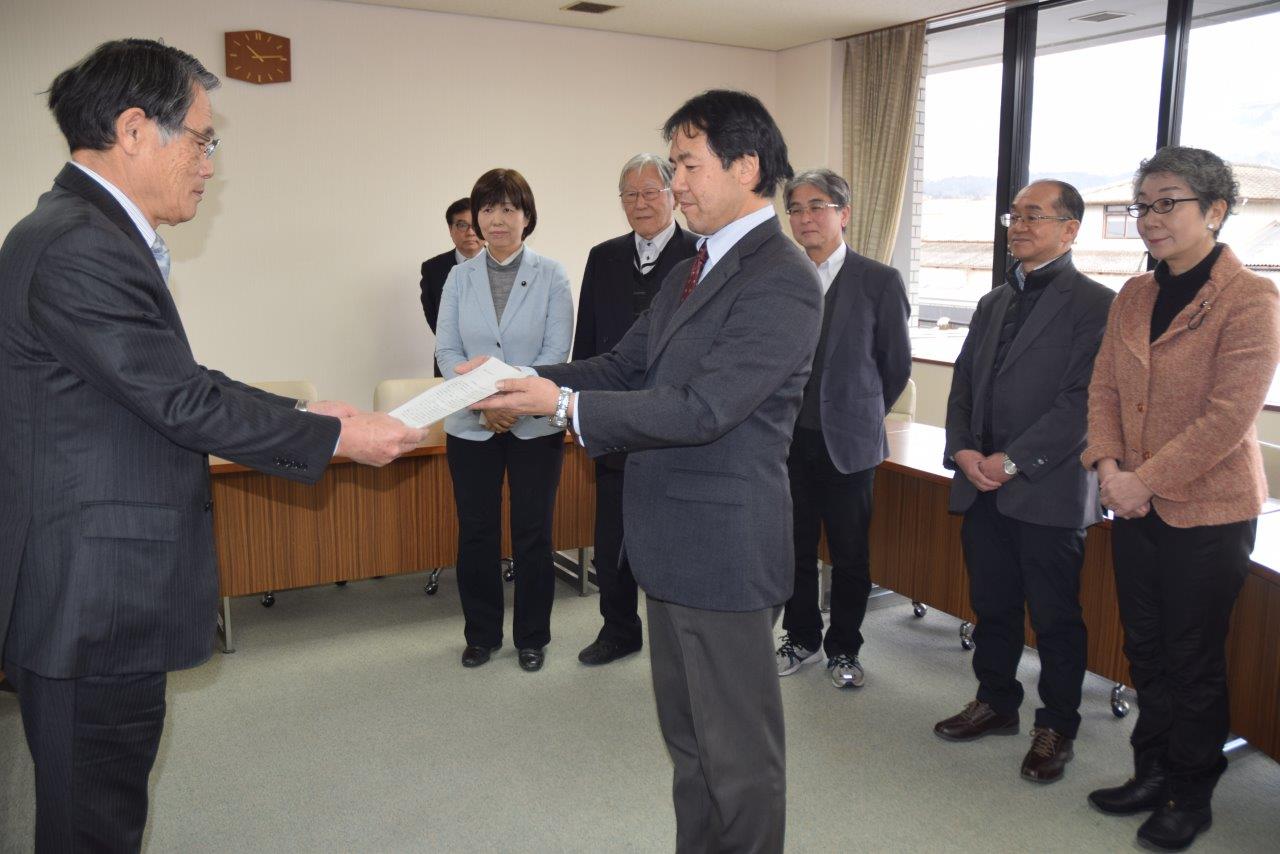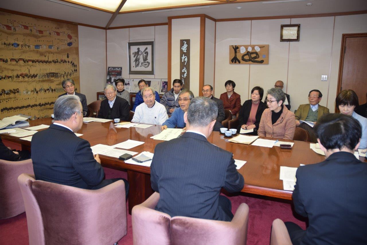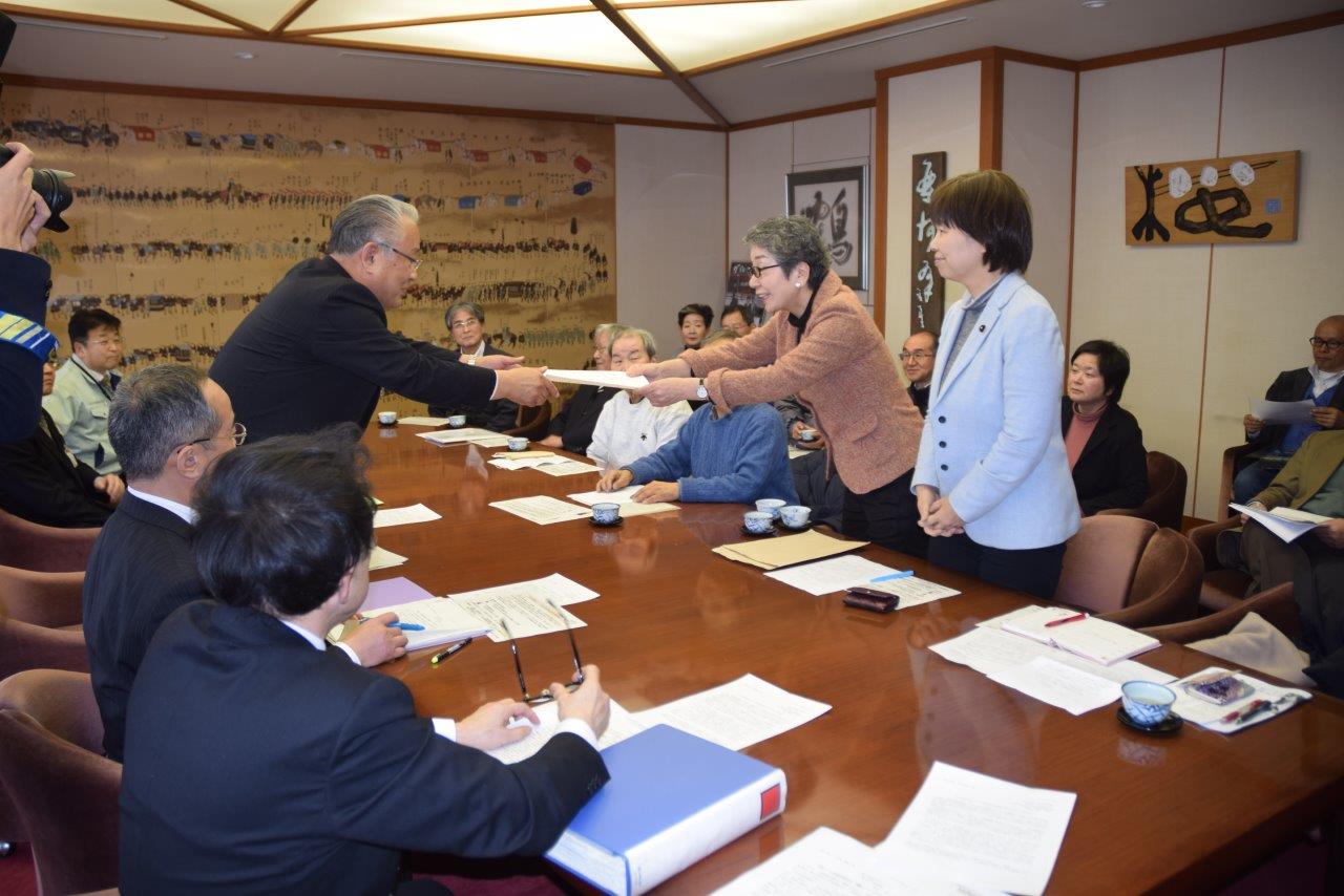 2017年2月13日 津山市長及び奈義町長に対し、岡山県での米海兵隊の単独訓練に反対するよう求める要望について申し入れを行いました。要望書の内容は、知事に対しての要望書と同じです。以下の写真はその時のものです。